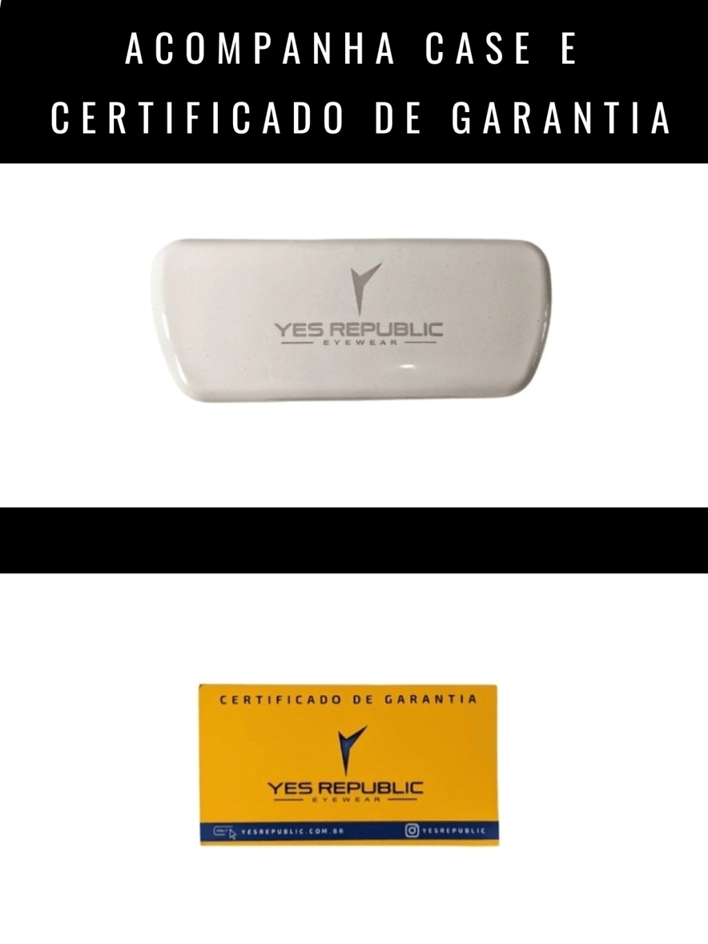 Todas as armações acompanham estojo, flanela, certificado de qualidade e garantia do produto.