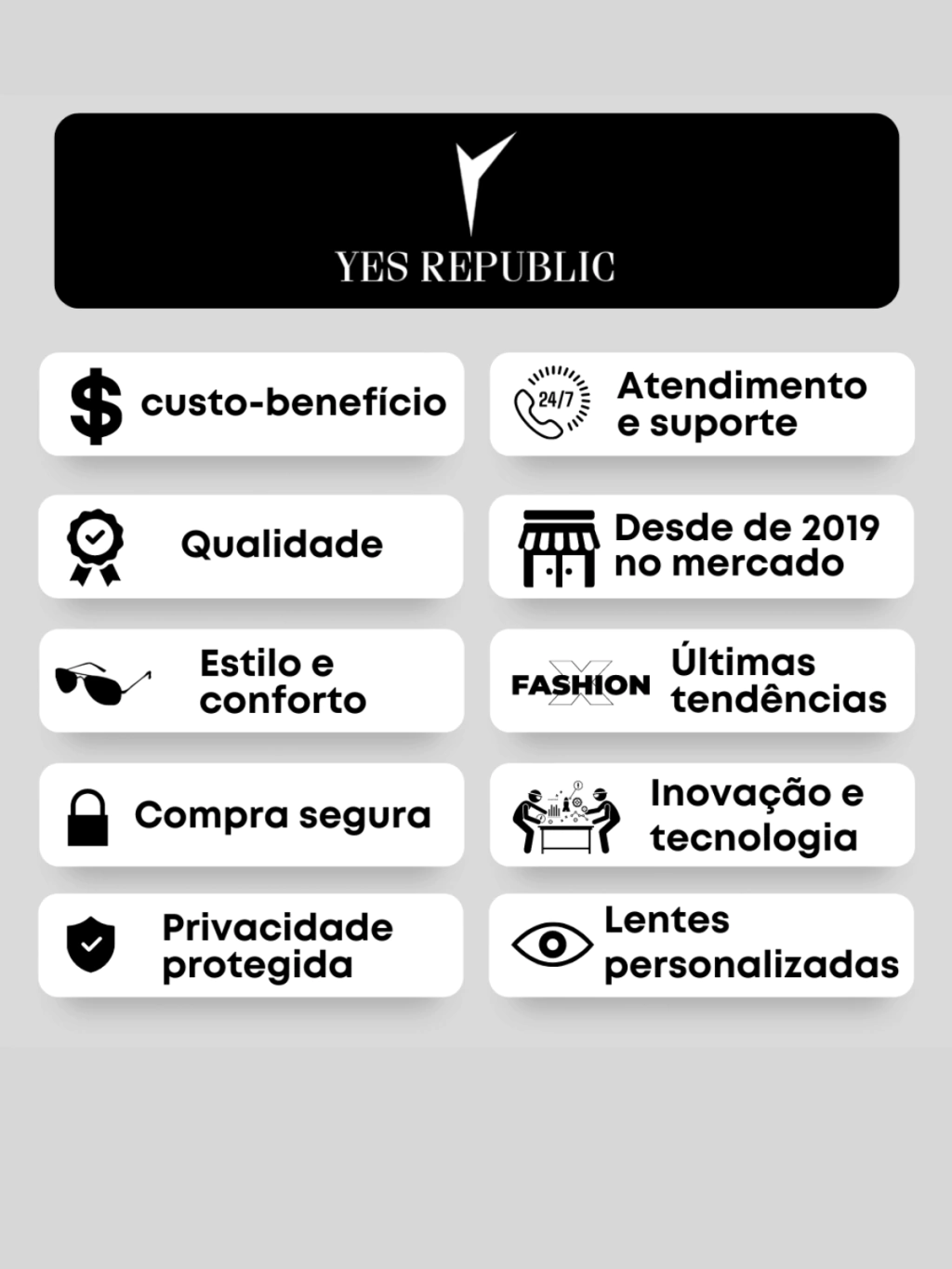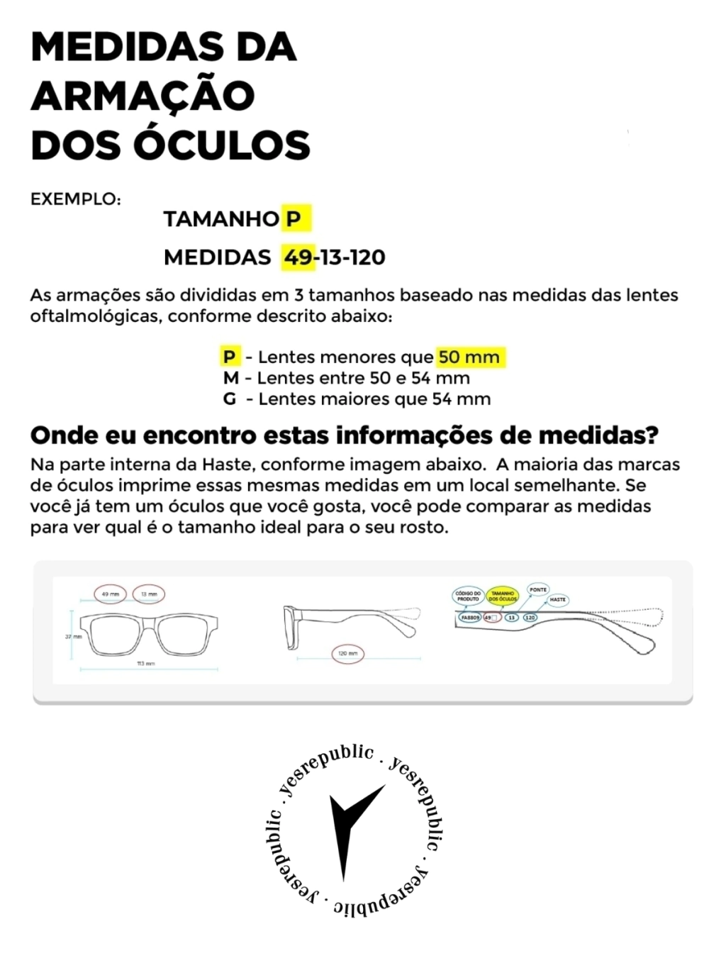 Aqui na Yes Republic você pode comprar seu óculos completo sem sair de casa. Para comprar o óculos completo, adicione a lente escolhida no seu carrinho de compras, caso tenha alguma dúvida em relação a qual lente comprar, clique no botão do whatsapp flutuante na tela e fale com nossos especialistas.