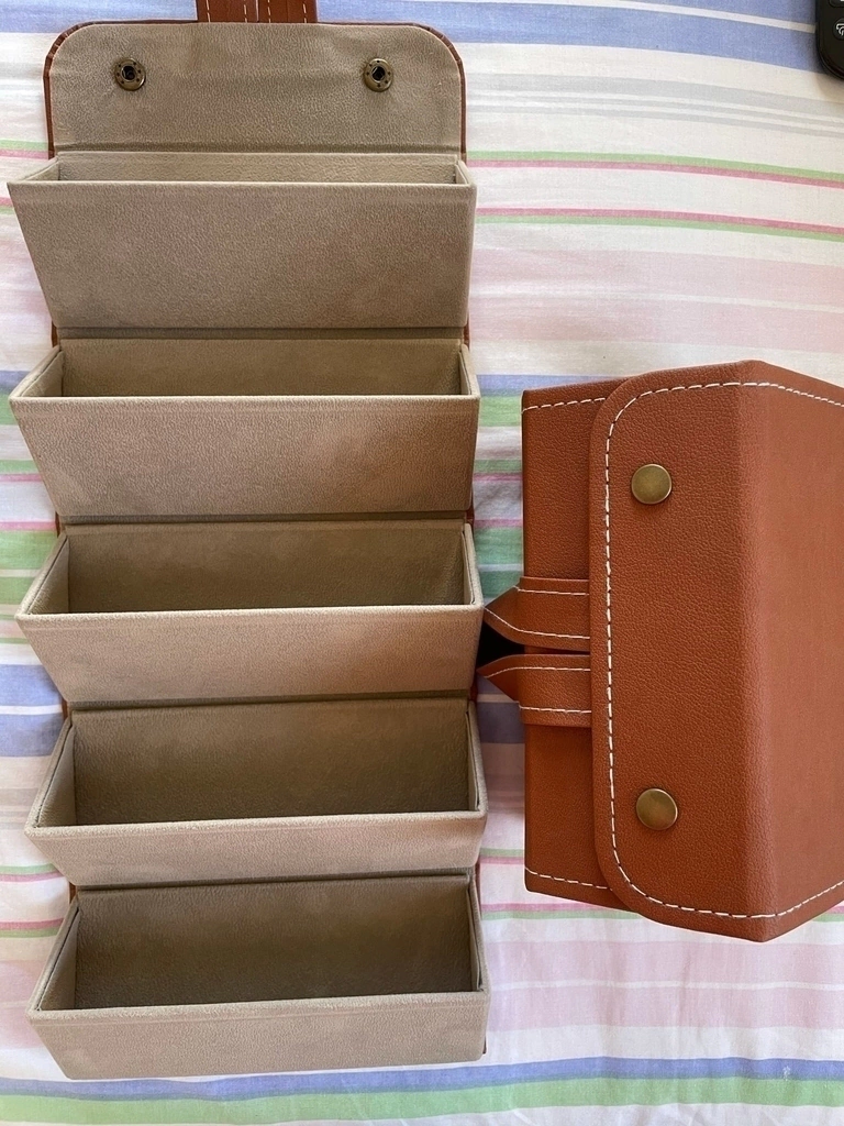 Prolongue a vida útil dos seus óculos guardando e organizando da melhor maneira. Guarde até 6 óculos. Compacto, dobrável e perdurável. Ótimo para proteger óculos de sol, óculos de leitura e pode até ser usado para acessórios menores. Material de couro PU à prova de poeira. Fácil de armazenar ou carregar.